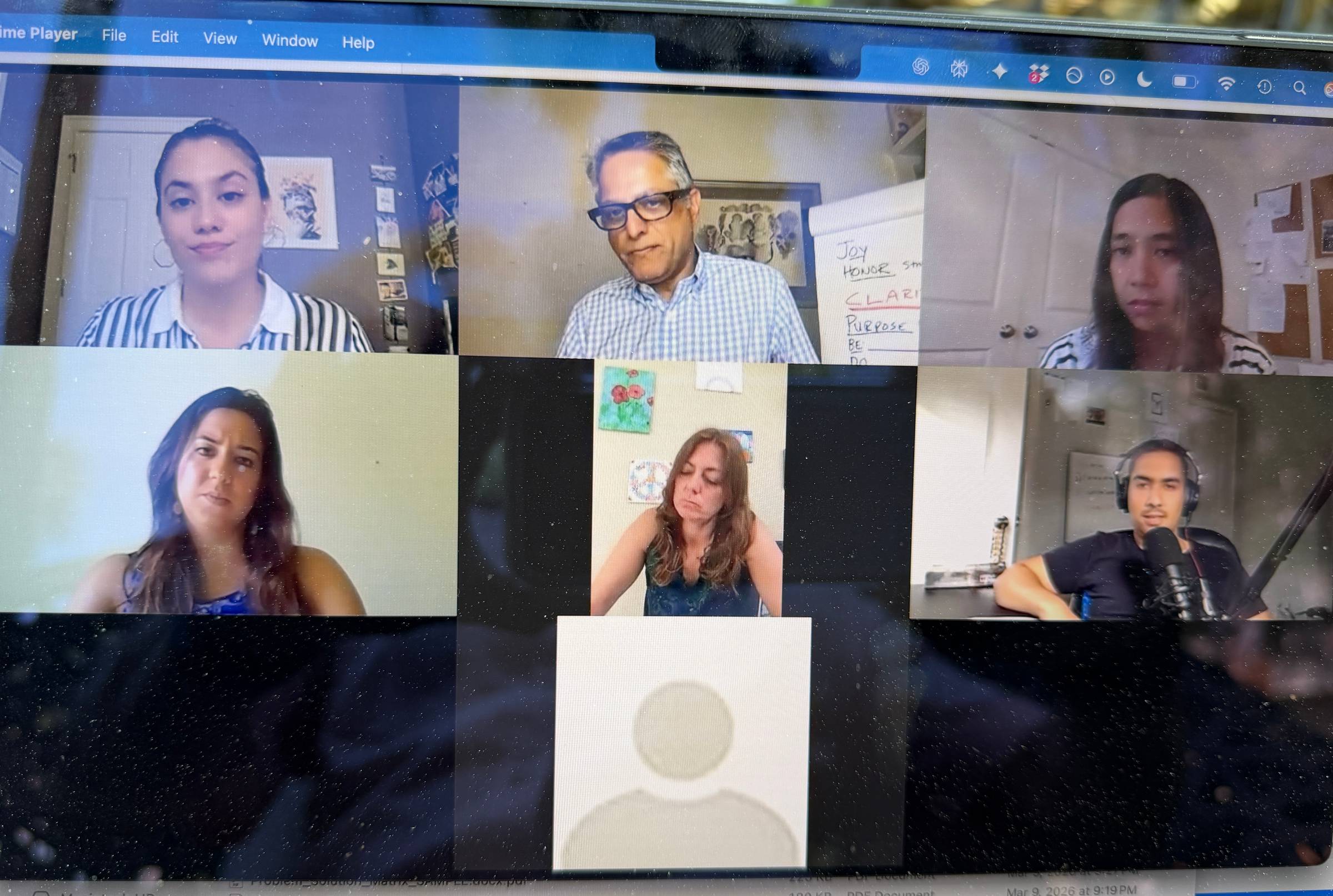 The other participants are not observers. They are peers at the same crossroads. What opens up in one person's conversation opens something up for everyone in the room.